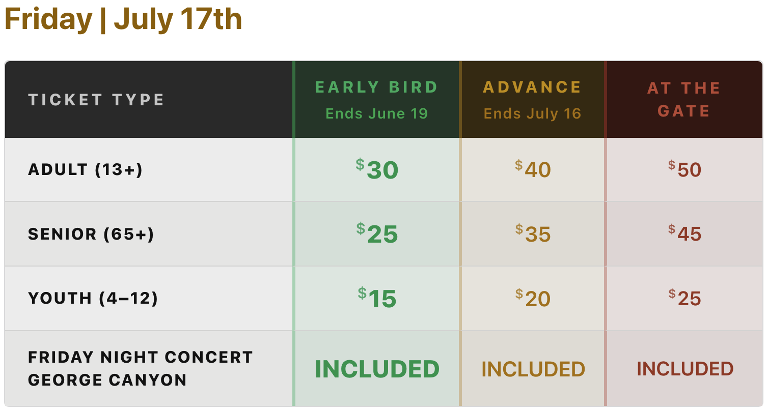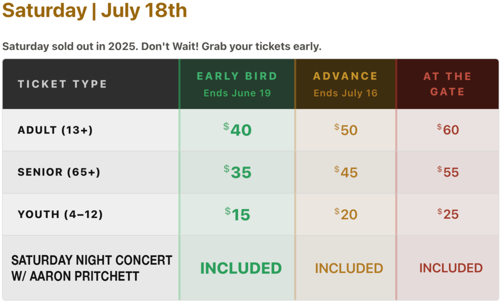 We offer a very limited amount of onsite camping! Please CALL or EMAIL us to book your camping passes. Spaces are first come, first serve.
