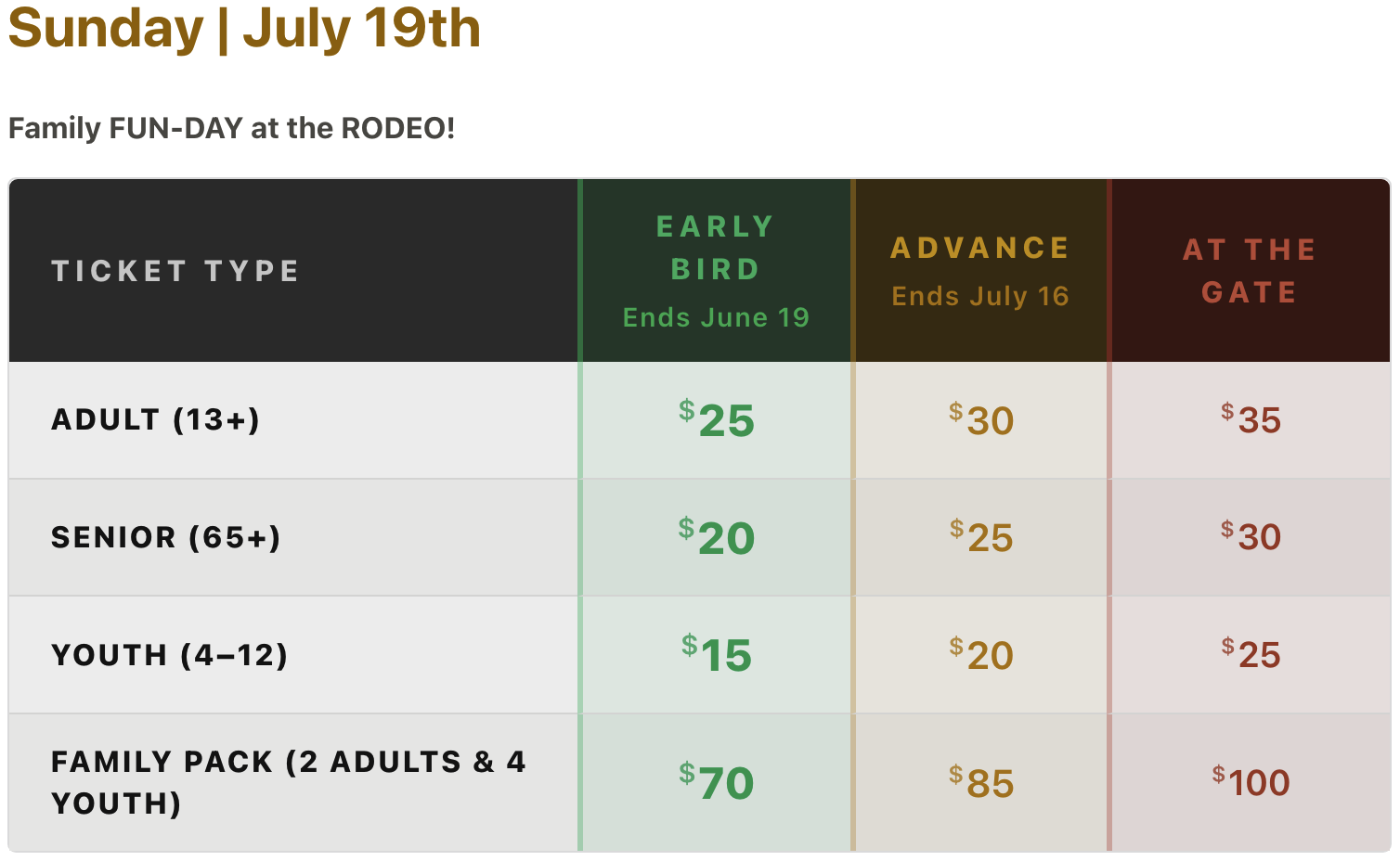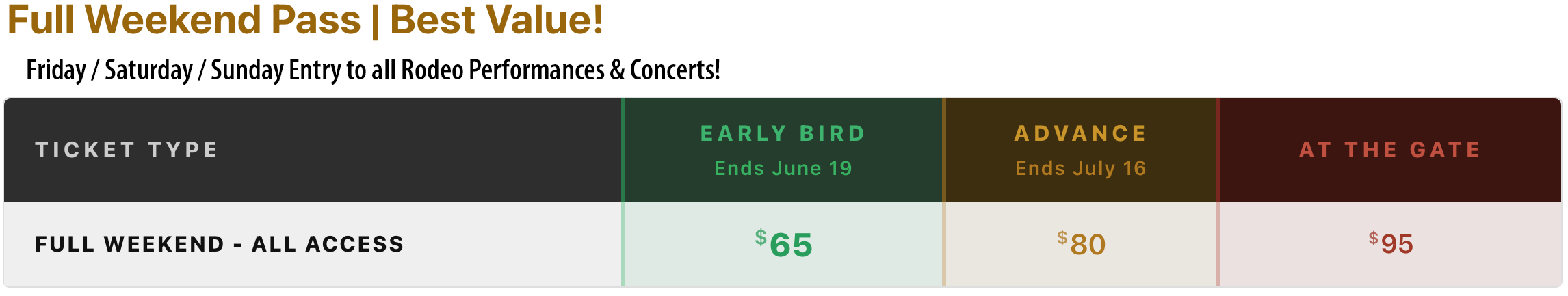 Price includes Entry to the Rodeo, Reserved Seat for the Day and 1 (one) Complimentary Beer or Water! Select Your Seat | Be Close to the Action | Comfortable Seats